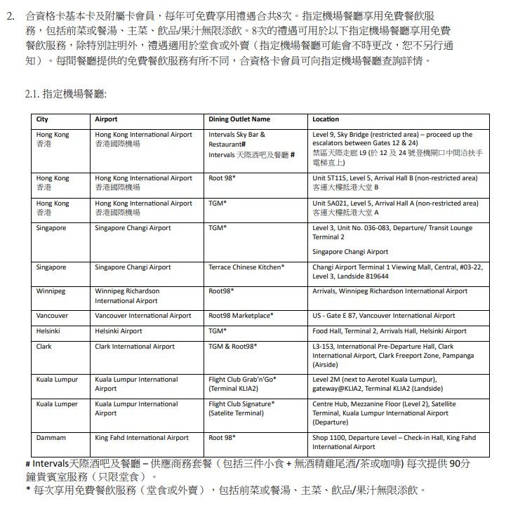 美國運通Explorer®與附屬卡會員每年可免費專享環亞機場貴賓候機室之設施合共8次。